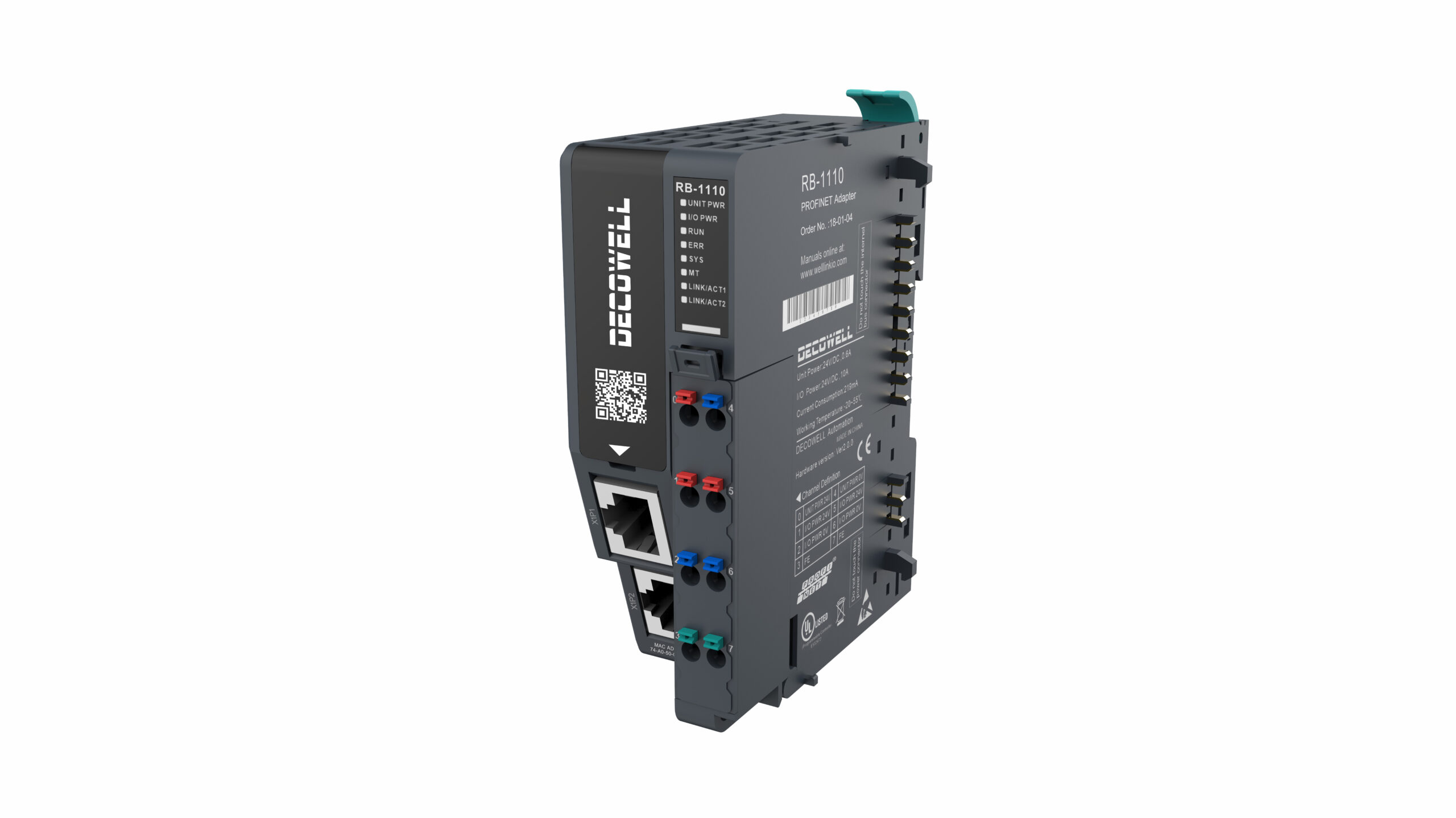 Módulo Escravo RB-1110 Decowell Comunicação Profinet com 32 Expansões e 2 RJ45 100Mbps para Automação Industrial