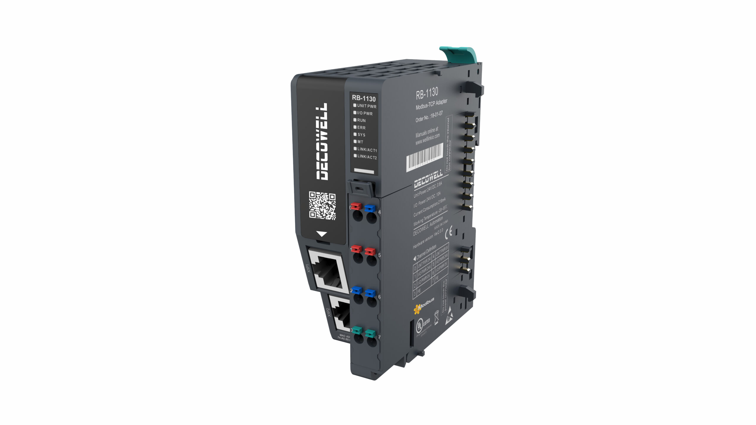 O módulo escravo RB-1130 da Decowell foi desenvolvido para integrar sistemas industriais com alta eficiência e flexibilidade. Com comunicação via protocolo Modbus/TCP, este equipamento facilita a conexão de até 32 módulos de expansão, garantindo uma rede robusta e escalável para aplicações automatizadas. Seu design compacto, com largura de apenas 34 mm, permite instalação otimizada em painéis com trilho DIN, atendendo às demandas de espaço reduzido sem comprometer a performance.
