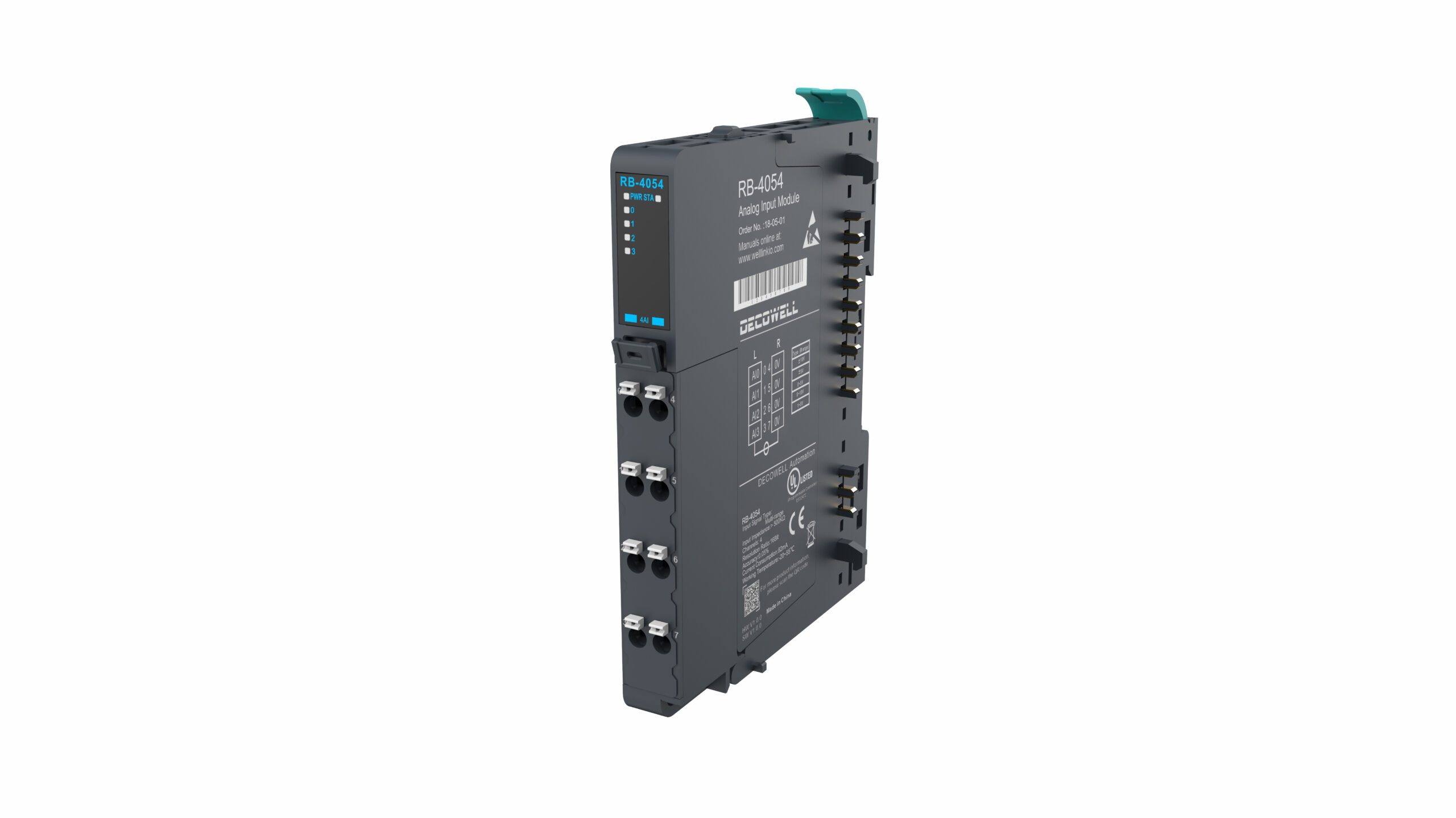 Módulo de Expansão Decowell RB-4054 com 4 Entradas Analógicas 16 Bits para Automação Industrial