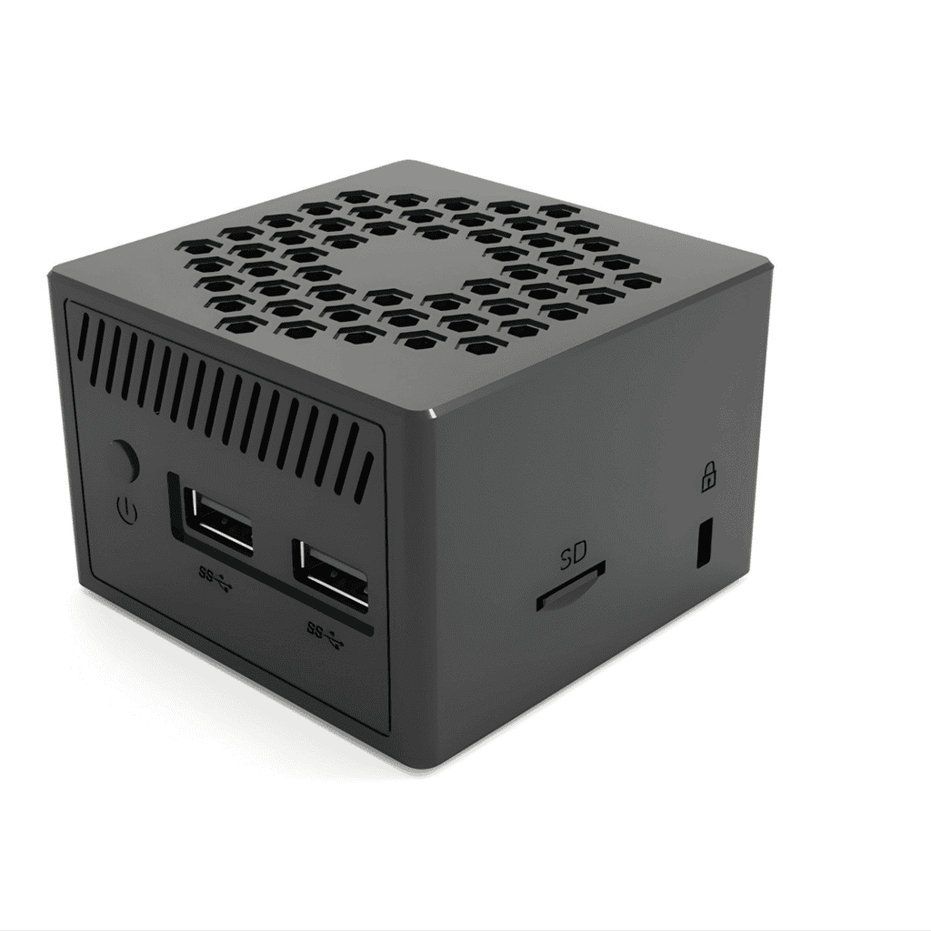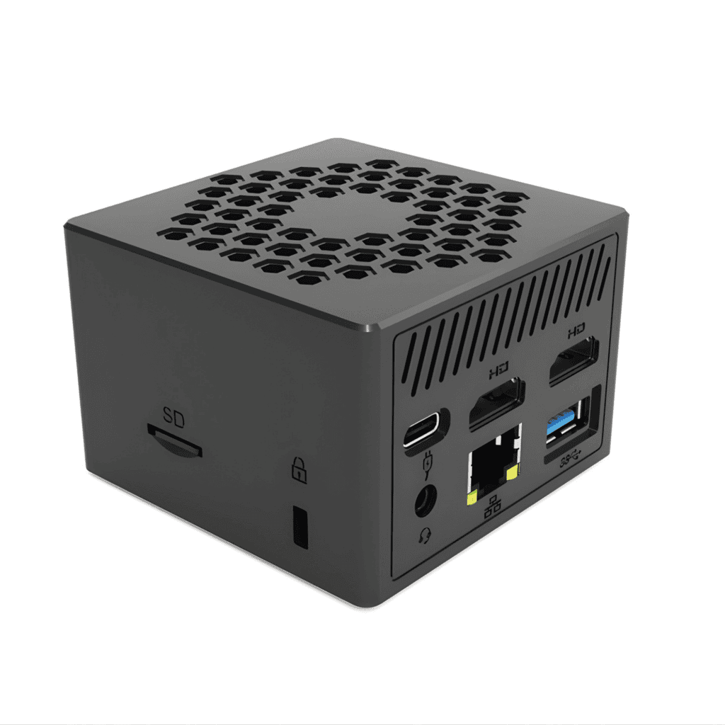 - Conectividade versátil: Duas portas HDMI suportam monitores duplos para expansão visual, enquanto a porta RJ45 e Wi-Fi integrado facilitam conexões estáveis e rápidas em redes corporativas.