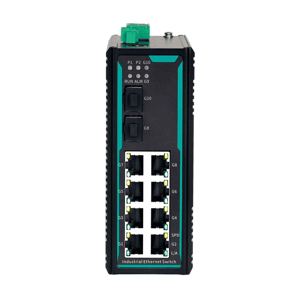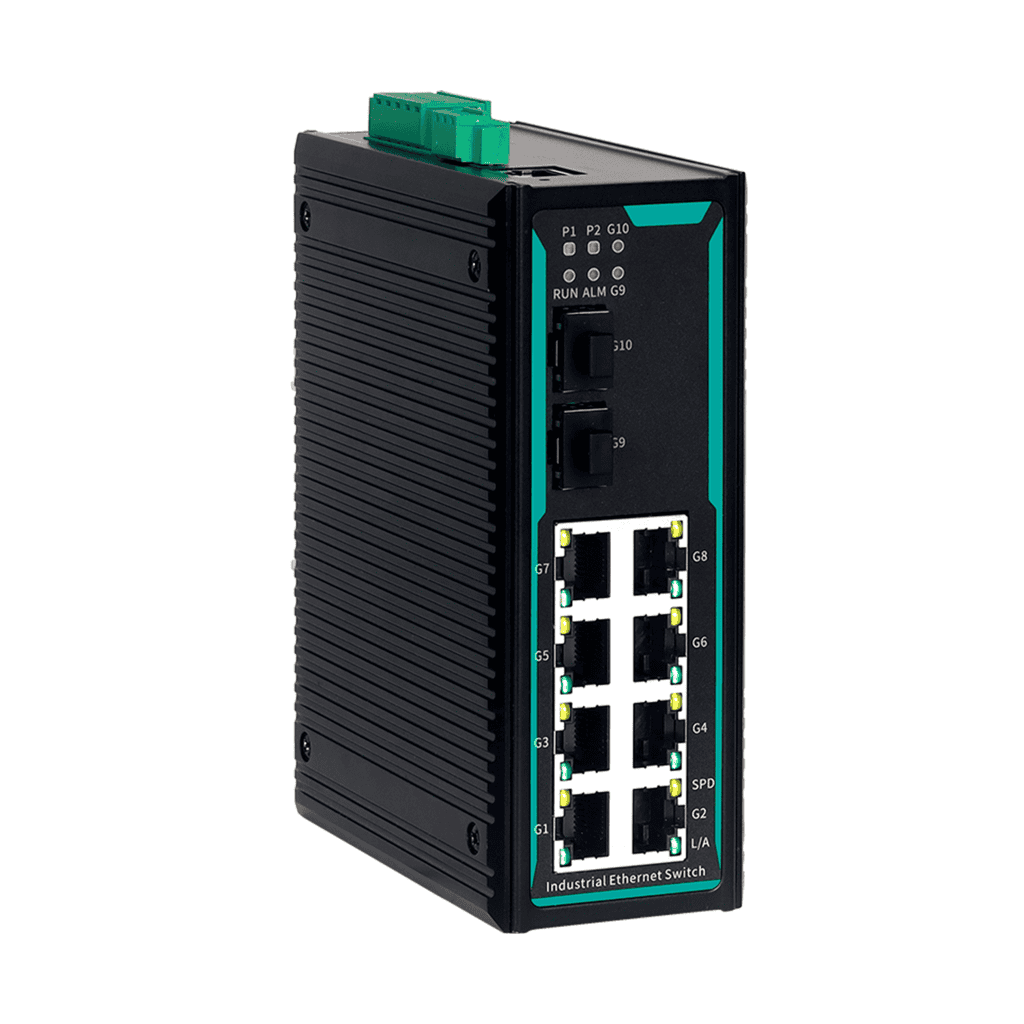 Switch Ethernet Industrial Gerenciável COM-ISGL2-10P-7210 com 10 Portas e Alimentação DC para Redes Industriais